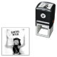 Timbre d'encre avec mon illustration originale d'une femme tenant un panneau, le panneau peut être customisé avec votre propre message.