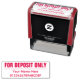 Cette estampille en caoutchouc comporte le message "POUR DÉPÔT SEULEMENT", ainsi qu'un nom et un numéro de compte personnalisés. Il pourrait peut-être être utilisé par un professionnel de l'administration ou un employé de bureau pour ajouter efficacement une cote restrictive à un chèque.