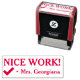 Ce design motivant de timbres en caoutchouc comprend le message "NICE WORK!" et un nom d'enseignant personnalisé. Il est également doté d'une coche décorative. Il pourrait être utilisé par un enseignant ou un éducateur pour évaluer le travail des étudiants, pour reconnaître qu'un étudiant a fait un travail exceptionnel.