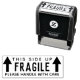 Timbre en caoutchouc fragile pratique pour votre petite entreprise avec des flèches pointant vers le haut et texte personnalisable qui lit Ce côté vers le haut; Fragile; s'il vous plaît manipuler avec soin.