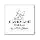 Ce timbre "Fabriqué à la main avec amour" présente un chat mignon avec une boule de laine et un nom personnalisé.