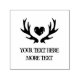 Des bois de cerfs rustiques et le coeur auto-timbre pour mariage. modèle de typographie vintage avec un symbole d'amour en détresse disparu. Parfait pour la campagne chic thème de chasse mariage, fiançailles, douche nuptiale, anniversaire, baby shower etc. Ajoutez votre propre texte, monogramme, citation drôle ou dire. Aussi agréable pour un message personnalisé "enregistrer la date" ou merci. Choisissez parmi de nombreuses couleurs d'encre. Accessoires de chasse élégants pour marié et marié, marié, marié, épouse, etc. Timbres en caoutchouc personnalisables.