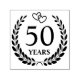 Elégant et romantique timbre 50ème anniversaire mariage avec 50 à l'intérieur d'une couronne de laurier aux coeurs enfermés.