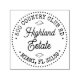Add a touch of vintage charm to your mail with this elegant Highland Estate address stamp. Featuring a classic circular design with dotted borders and decorative leaf accents, this stamp clearly displays your address in a stylish, script font. Perfect for adding a personal and sophisticated flair to envelopes, invitations, or any correspondence. This stamp makes sending mail a delightful experience, reflecting a timeless elegance that will impress your recipients. Its unique design captures the essence of a classic estate, making every piece of mail feel special.