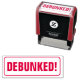 Cette estampille en caoutchouc présente le mot "DEBUNKED!" dans un rectangle aux angles arrondis.