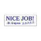 Ce design amusant de timbres en caoutchouc comprend le message positif "NICE JOB!" et le nom d'un éducateur personnalisé. Il présente également des notes de musique décoratives. Il pourrait être utilisé par un enseignant ou un éducateur pour évaluer le travail des étudiants, pour reconnaître qu'un étudiant a fait un travail exceptionnel.