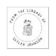 Nos Fleurs mignonnes sur Pile de Livres Bibliothèque personnalisée Timbre en caoutchouc est un ajout délicieux et personnalisé à votre collection de livres. Ce charmant timbre en caoutchouc présente votre nom personnalisé dans une typographie ronde et manuscrite en bas, ajoutant une touche personnelle à chaque livre que vous possédez. Au centre du design, vous trouverez une illustration fantaisiste de fleurs simples dessinées à la main, perchées sur un tas de livres, rendues en noir et blanc classique. Les fleurs jolies et ludiques apportent une touche d'élégance et de chaleur, faisant de ce timbre un parfait mélange de charme littéraire et d'esprit artistique. Idéal pour les amateurs de livres, les enseignants ou toute personne qui chérit leur bibliothèque personnelle.