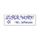 Cette conception motivante de timbres en caoutchouc comprend le message encourageant "SUPER TRAVAIL !" et le nom d'un éducateur personnalisé. Il présente également un contour décoratif étoilé. Il pourrait être utilisé par un enseignant ou un éducateur pour marquer les affectations, pour reconnaître que l'étudiant a fait un excellent travail.