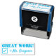 Ce design amusant de timbres en caoutchouc comprend le message inspirant "GRAND TRAVAIL !" et le nom d'un enseignant customisé. Il dispose également d'une marque décorative. Il pourrait être utilisé par un enseignant, un éducateur ou un tuteur pour marquer les affectations, pour indiquer qu'un étudiant a bien fait.