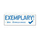 Ce design inspirant d'estampille en caoutchouc présente le message de motivation "EXEMPLAIRE !" et le nom d'un enseignant, d'un éducateur ou d'un tuteur personnalisé. Il est également doté d'une coche décorative. Il pourrait être utilisé par un enseignant, un éducateur ou un tuteur pour marquer les affectations, pour reconnaître que l'étudiant a bien fait.