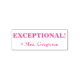 Cette conception encourageante de timbres en caoutchouc comprend le message de motivation "EXCEPTIONNEL!" et le nom d'un enseignant customisé. Il pourrait être utilisé par un enseignant, un éducateur ou un tuteur pour marquer les affectations, pour indiquer que l'étudiant a fait un excellent travail.