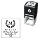 Use this initial monogram custom address stamp, featuring a laurel wreath, on toutes your communicants. fill in your information on the template form. Use the Customize feature to access the advanced menus to change font and layout.