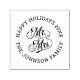 Ce cachet en caoutchouc sur mesure indique "happy holiday" en haut, avec le nom de famille ci-dessous, encadrant un charmant, de style vintage "mr. & mrs." graphique au centre. Ce timbre minimaliste et élégant est parfait pour ajouter une touche personnalisée aux cartes de fin de année, aux RSVP et aux envois familiaux. Conçu avec un style élégant, il célèbre les jeunes mariés ou les couples de longue date, ce qui en fait l'endroit idéal pour la papeterie de vacances et l'emballage cadeau avec une touche unique et festive.