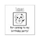 Timbre de la fête d'anniversaire du Merci de l'enfant qui s'auto-encrée. Dessin avec un joli dessin en noir. Art original par SuzanneHeinCreations © 2022 Suzanne Hein Tous droits réservés. Vous pouvez modifier le texte/la police/les couleurs à l'aide de l'outil de conception.