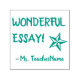 Cette conception positive de timbres en caoutchouc comprend le message inspirant "WONDERFUL ESSAY!" et le nom d'un enseignant ou d'un éducateur customisé. Il est également décoré en étoile. Il pourrait être utilisé par un enseignant, un éducateur ou un tuteur pour marquer les affectations, pour reconnaître qu'un étudiant a bien fait.