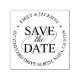 Terminez votre enregistrement des enveloppes de date et des cartes postales avec ce cachet en caoutchouc chic avec vos noms et l'adresse de retour encerclant "enregistrer la date".
