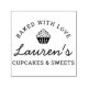 Timbre du logo de cupcake cuite à l'amour pour les entreprises de boulangerie avec un design rétro moderne de boulangerie noir et blanc avec nom d'entreprise personnalisé. Parfait également pour envelopper les cadeaux de fêtes.