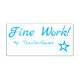 Ce design inspirant d'estampille en caoutchouc comprend le message de rétroaction motivant "Bon travail!" et un nom d'enseignant personnalisé. Il présente également un contour décoratif étoilé. Il pourrait être utilisé par un enseignant, un éducateur ou un tuteur pour marquer les affectations, pour indiquer qu'un étudiant a bien fait.