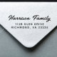 Timbre d'adresse de retour moderne avec votre nom de famille dans un script élégant et votre adresse en lettres simples. Un cadeau parfait pour les nouveaux propriétaires et pour les invitations à un mariage, les annonces de fête, la correspondance quotidienne et les mailings d'affaires.