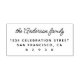 Personnalisez vos mailings de vacances avec notre Timbre auto-alimenté. Votre nom de famille est présenté en script blanc, et l'adresse de retour est en typographie chic minimaliste. Ce timbre garantit que vos enveloppes et colis ont une touche polie et personnalisée.