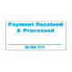 Cette conception simple et en caoutchouc comprend les messages "Paiement reçu et traité" et une ligne où une date de paiement peut être écrite. On pourrait peut-être l'utiliser pour indiquer qu'une facture ou une facture a été payée en entier.
