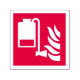 Unité applicatrice de mousse et icône de flamme sur arrière - plan rouge.