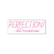 Ce design inspirant d'estampille en caoutchouc comprend le message de rétroaction de motivation "PERFECTION!" et le nom d'un enseignant, d'un éducateur ou d'un tuteur personnalisé. Il pourrait être utilisé par un enseignant, un éducateur, un instructeur ou un tuteur pour marquer les affectations, afin de reconnaître que l'étudiant a bien fait.