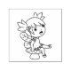 Jolie petite fée avec des oreilles pointues et des ailes membranaires, habillée d'une simple robe de tunique, est assise sur un champignon de tabouret et sourit joyeusement.