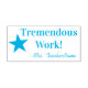 Ce design inspirant de timbres en caoutchouc comporte le message de louange "Travail prodigieux !" et un nom d'enseignant customisé. Il est également décoré en étoile. Il pourrait être utilisé par un enseignant, un éducateur ou un tuteur pour évaluer le travail des élèves, pour indiquer qu'un étudiant a fait un travail exceptionnel.