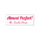Ce design inspirant de timbres en caoutchouc comprend le message encourageant "Presque Parfait !" et le nom d'un éducateur customisé. Il pourrait être utilisé par un enseignant, un éducateur ou un tuteur pour évaluer le travail des élèves, afin de reconnaître qu'un étudiant a fait un travail exceptionnel.