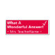 Ce design inspirant de timbres en caoutchouc comprend le message de louange "What A Wonderful Answer!" et un nom d'éducateur personnalisé. Il dispose également d'une marque décorative. Il pourrait être utilisé par un enseignant, un éducateur, un instructeur ou un tuteur pour marquer les affectations, pour indiquer que l'étudiant a bien fait.