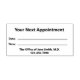 Ce timbre indique "Votre prochaine nomination" en haut. Il y a aussi des lignes pour la date et l'heure du rendez-vous. Le bas a le texte d'affichage que vous pouvez modifier pour le nom du médecin (ou le nom de l'exercice) et le numéro de téléphone. Tout le texte peut être modifié ou supprimé.