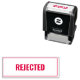 This business self-inking stamp is a text template. You can edit the text to show a custom message. (Shown: Rejected) There is a border around the text. The text is in all caps.