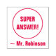 Ce design de timbres en caoutchouc encourageant comporte le message "SUPER RÉPONSE !" et un nom d'éducateur customisé. Il pourrait être utilisé par un enseignant, un éducateur, un instructeur ou un tuteur pour marquer les affectations, pour reconnaître que l'étudiant a fait un excellent travail.