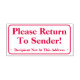 Cette simple estampille en caoutchouc comporte les messages "Please Return To Sender!" et "⬩ Destinataire Not At This Address ⬩". Il pourrait être utilisé pour indiquer que le courrier reçu a été livré à la mauvaise adresse et devrait être retourné à l'expéditeur.