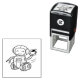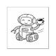 Illustration en noir et blanc d'un mignon robot futuriste qui roule rapidement en tenant une tasse de café.