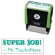 Ce design inspirant de timbres en caoutchouc comprend le message inspirant "Super Job!" et un nom d'éducateur personnalisé. Il pourrait être utilisé par un enseignant, un éducateur, un instructeur ou un tuteur pour évaluer le travail d'un élève, afin d'indiquer qu'un étudiant a fait un travail exceptionnel.