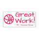 Ce design inspirant de timbres en caoutchouc comprend le message de louange "Super travail!" et un nom d'éducateur customisé. Il dispose également d'une icône décorative de basket-ball. Il pourrait être utilisé par un enseignant ou un éducateur de l'école pour marquer les affectations, pour reconnaître qu'un élève a bien fait.