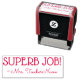 Cette conception amusante de timbres en caoutchouc comprend le message de retour positif "SUPERB JOB!" et le nom d'un éducateur personnalisé. Il pourrait être utilisé par un enseignant, un éducateur ou un tuteur pour marquer les affectations, pour indiquer qu'un étudiant a bien fait.