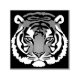 Belle art vectoriel abstrait minimaliste d'une tête de tigre orientée vers l'avant en noir et blanc.