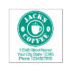 Timbre en caoutchouc auto-encastré pour l'entreprise de café. Ajoutez votre propre adresse et nom de société. Idéal pour le magasin, le magasin, le café, le bar, le bistrot, le grille-pain, le barista, le producteur et plus encore. Couleur d'encre personnalisée ou verte. Logo silhouette de fèves de café et de tasse de café.