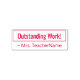 Ce design de timbres en caoutchouc encourageant comporte le message encourageant "Travail exceptionnel !" et le nom d'un enseignant personnalisé. Il pourrait être utilisé par un enseignant, un éducateur, un instructeur ou un tuteur pour évaluer le travail d'un élève, afin d'indiquer qu'un étudiant a fait un travail exceptionnel.