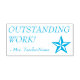 Ce design inspirant de timbres en caoutchouc comprend le message inspirant "TRAVAIL EXCEPTIONNEL!" et le nom d'un éducateur customisé. Il dispose également d'une icône d'étoile décorative. Il pourrait être utilisé par un enseignant, un éducateur ou un tuteur pour marquer les affectations, pour indiquer qu'un élève a bien fait.