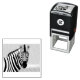 Portrait d'un zèbre contre le ciel bleu. L'image a été prise en Namibie, Parc national d'Etosha. © Angelika Stern