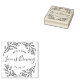 Tampon en caoutchouc de cadeau de mariage sur mesure avec un design élégant et moderne de feuilles et de branches dessinées à la main. Personnalisez avec les noms des mariés/couple et la date du mariage pour un style élégant sur les cadeaux et les faveurs de café/thé de mariage et les cadeaux.