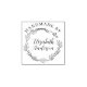 Timbre en caoutchouc simple pour les cadeaux faits à la main dans la belle calligraphie script avec votre nom enveloppé dans une couronne de laurier avec bourgeons et coeurs.
