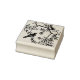 Ce timbre d'art du bois pour vos projets artisanaux est l'illustration d'un mignon oiseau noir assis dans des branches d'arbres avec des fleurs en forme d'étoile et de petites baies.