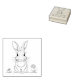 Un timbre en caoutchouc avec une jolie illustration de lapin en ligne pour des activités manuelles avec des enfants et des travaux d'artisanat! Le lapin est assis sur ses pattes arrières avec des marguerites de chaque côté. Ce timbre peut également être utilisé pour des occasions telles que le printemps, Pâques ou baby shower.