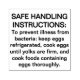 La FDA exige que tous les cartons d'oeufs en coquille qui n'ont pas été traités pour détruire Salmonella portent l'énoncé de manipulation sécuritaire suivant : INSTRUCTIONS DE MANIPULATION SÛRE Pour prévenir la maladie des bactéries : garder les oeufs au réfrigérateur, cuire les oeufs jusqu'à ce que les jaunes soient fermes et cuire les aliments contenant des oeufs à fond. 2025