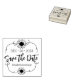 Ce tampon en caoutchouc "Save the Date" présente un cadre marguerrier avec des noms de couple et la date.